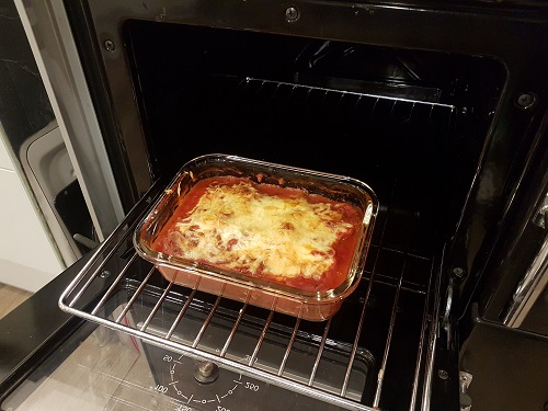 Darüber Sauce und ein paar Scheiben Mozzarella. Mit Parmesan betreuen und nochmals Aubeginen, Sauce, Mozzarella und Parmesan.