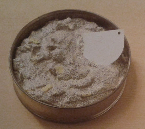 Backrohr auf 170 Grad vorheizen. Die Masse in gebutterte und bemehlte Form füllen und an der Oberfläche glatt streichen (siehe Foto). Etwa 55 Minuten lang backen, Nadelprobe machen. In der Form erkalten lassen. Aus der Formlösen und mit Staubzucker übersieben.