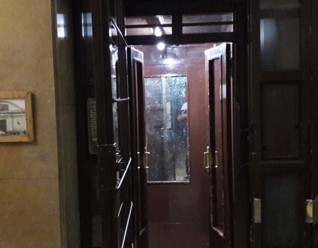Er setzt sich mit enormen Knattern und Rumpeln in Gang, und das nicht immer verläßlich. Die Fahrt war immer ein bisschen aufregend. Wenn es rasch gehen mußte, sind wir die drei Geschoße lieber gelaufen.