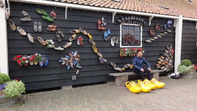 Käserei und Holzschuhfabrik freuen sich über unseren Obulus. Ob Andreas seine Klompen auch wirklich trägt wird sich zeigen - der Käse schmeckt jedenfalls hervorragend.