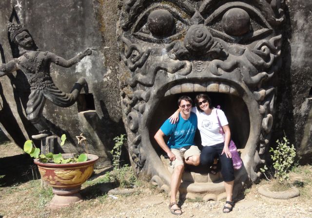 Der Buddha Park wie von Andre Heller geschaffen, die goldene Stupa beeindruckend.