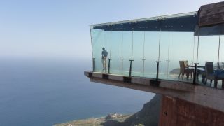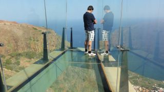 | Sieht wagemutig aus, und tatsächlich ist es nicht jedermanns Sache am Glasboden über dem Abgrund zu stehen. Hier gehen wir eine Runde spazieren und stärken uns mit einer Jause im Panorama Restaurant bevor es mit der Fähre zurück nach Teneriffa geht. |