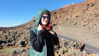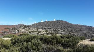 Unser letzter Tag in Tenerifa Wir wandern mitten in den Vulkanen, die Landschaft ändert immer wieder ihre Farben. Von rot über schwarz zu verschiedenen ockertönen. Ganz oben sehen wir das Planetarium. |