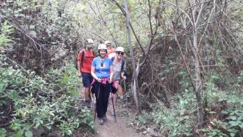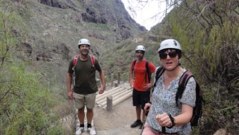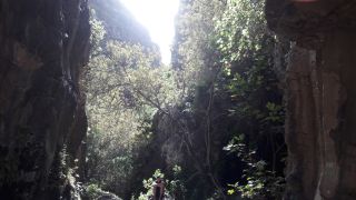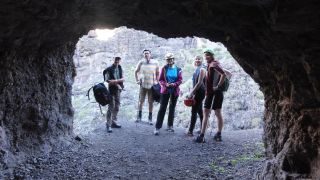 | Der Vorschlag kommt von Matheo, und er ist auch gleich unser Bergführer. Wir wandern nicht am normalen Wanderweg hinunter zum Meer, sondern durch die Felsen und zwei Tunnels. Diese wurden urspünglich für die Wasserleitung gebaut. Herausfordernd und spannend. Ein Highlight unseres Urlaubs! |