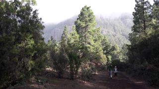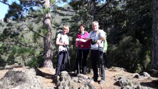 Walter und Eva kommen aus dem Süden, und wir aus dem Norden angereist. Hier in der Mitte treffen wir uns und machen gemeinsam eine schöne Tageswanderung. Auch hier gibt es dichten Wald, wie wir ihn sonst nur auf La Gomera gesehen haben. Ganz besonders märchenhaft durch die langen Bartflechten an den Bäumen („Cabello de hadas“, zu deutsch „Feenhaar“). |