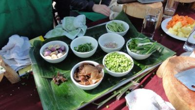 zubereitet und nachher laotischen Schnaps getrunken. Jetzt liegen wir flach.