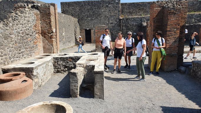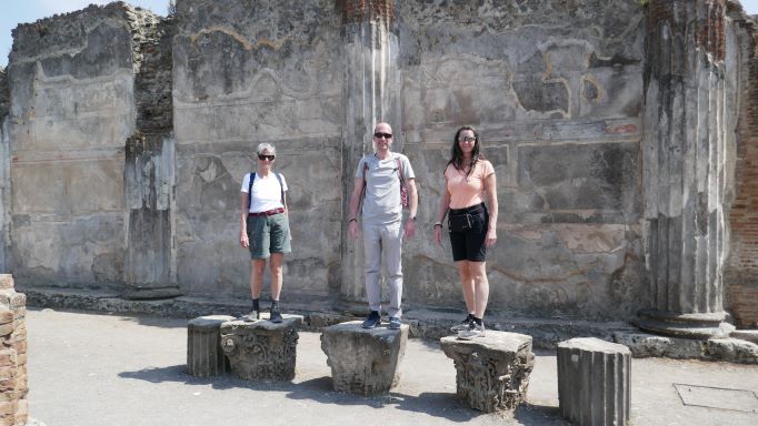 Tag 2: Ein Teil der Gruppe bricht auf zum Vesuv, während Claudia und Silvia weiter das Flair der Stadt genießen. Später treffen wir uns in Pompeji bei den Ausgrabungen.