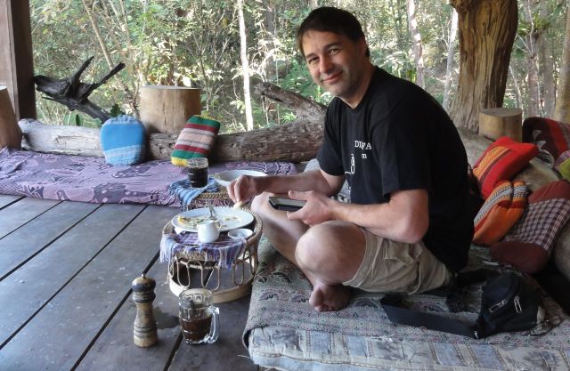 Dream Time wird vom Belgier Mike und Michelle (einer Australierin) betrieben. Mike hat vor etwa 8 Jahren ein schönes Stück Wald gekauft und ein paar Bungalows aufgestellt. Jeder Bungalow hat seinen eigenen Charakter. In der Mitte steht eine überdachte Platform, welche Aufenthaltsraum, Speisesaal und Küche ist. Dort haben wir junge Backpacker aus aller Welt kennen gelernt.