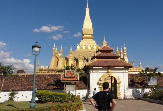 Vientiane ist eine große, belebte Stadt. Nach den beschaulichen Tagen bei Mike kam es uns hier sehr laut vor. Trotzdem hat die Stadt ihren Reiz. Eine Verquickung aus Asien mit Paris. Die Champs Elysees gibts auch hier, ebenso den Triumphbogen. Croisants und Kaffee waren hier teuer aber großartig.