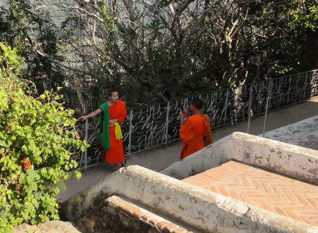 Nächste Station: Luang Prabang. Eine entzückende Stadt, eingeklemmt zwischen 2 Flüsse, in der Mitte ein Berg mit Kloster.
