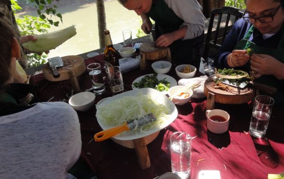 In Luang Prabang haben wir wieder mal einen Kochkurs besucht. Gemeinsam mit jungen Menschen aus aller Welt haben wir über 10 laotische Speisen zubereitet und auch gegessen. Sooo gut!!!
