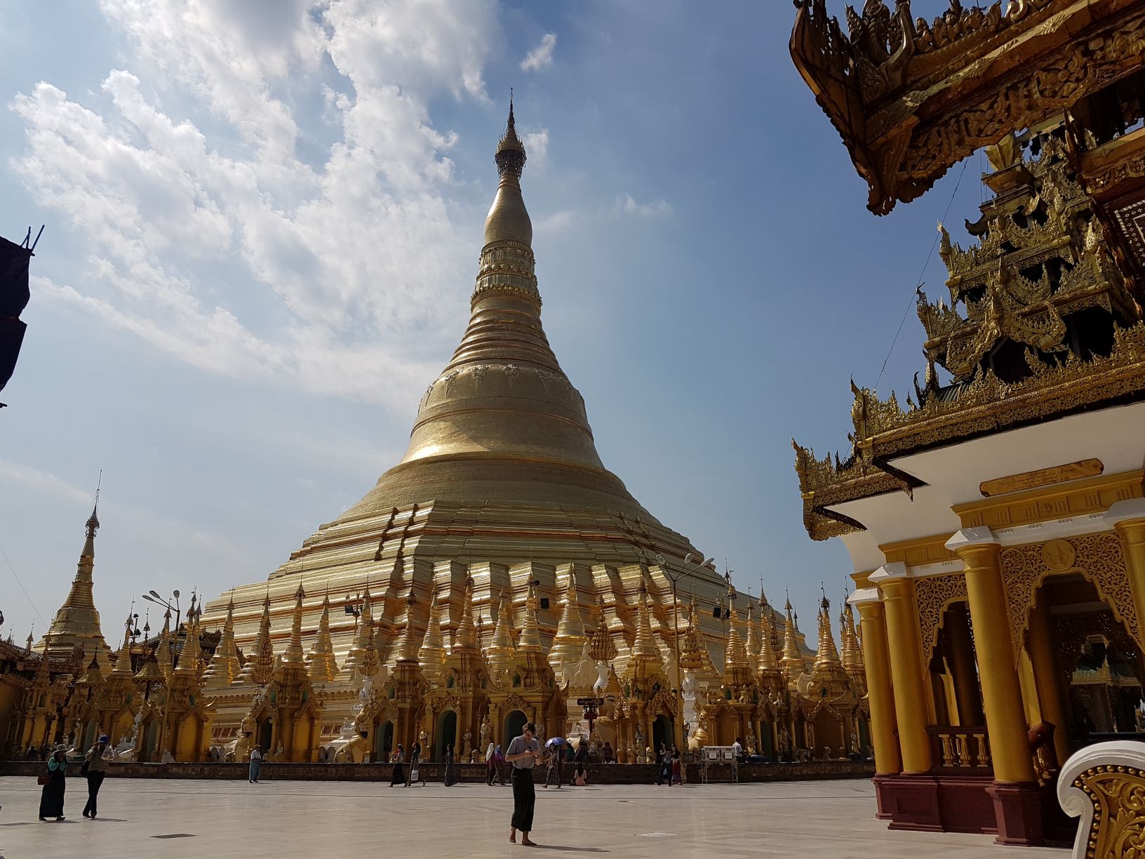 Vier Tage bleiben wir in der Stadt. Besichtigen viele Pagoden und atmen das Flair der geschäftigen Stadt, wobei das Highlight unumstritten die Shewdagon Pagode ist - bei Tag und Nacht einfach nur beeindruckend.