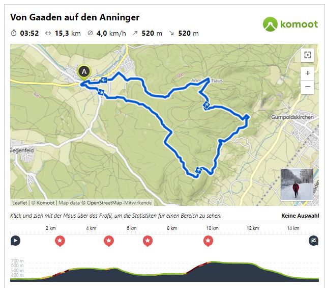 Ein gestreckter Marsch von 15,3 km und 520 Höhenmeter.